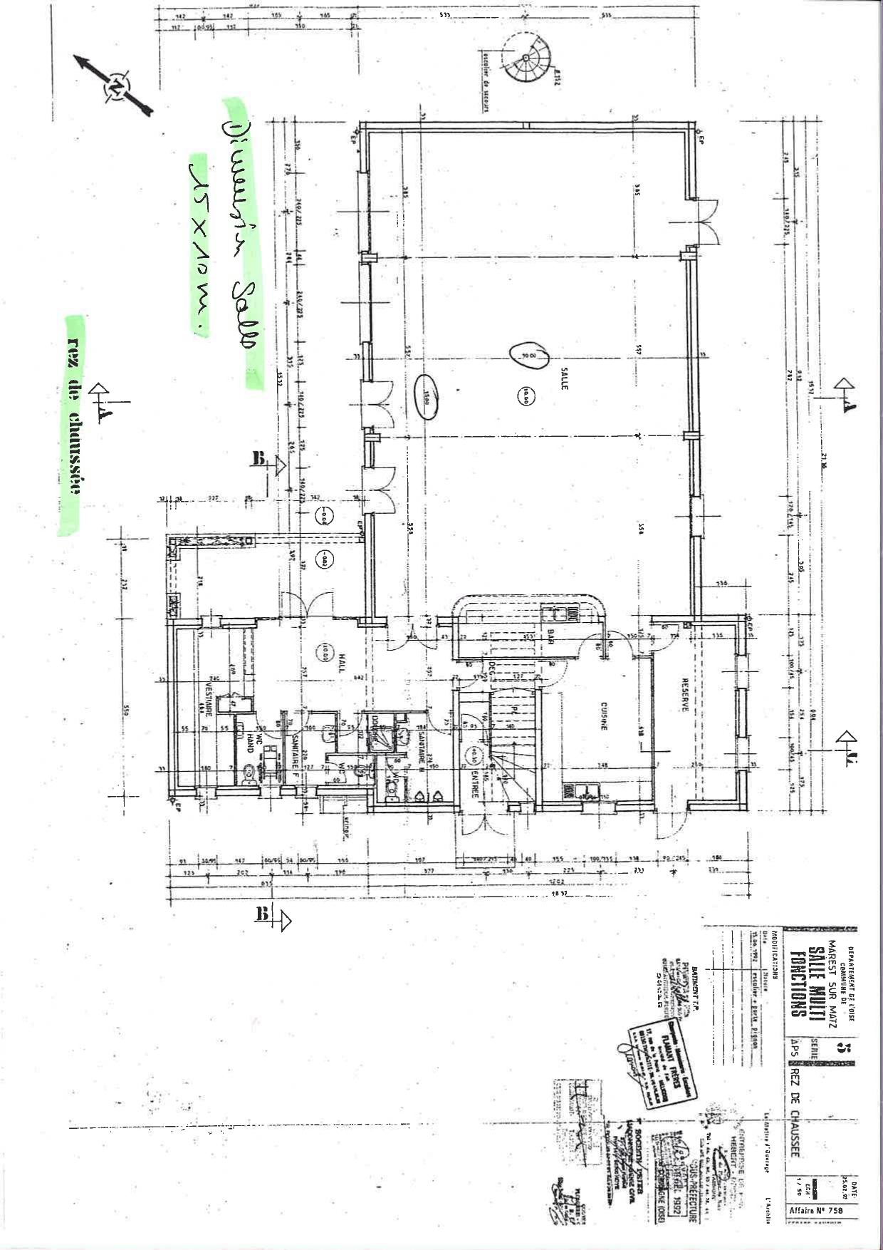 Salle du 1er étage : Entrée - Escalier - Vestiaire - Toilettes - Cuisine équipée 2 réfrigérateurs/congélateurs, fourneau 5 plaques électriques et four bergerie.